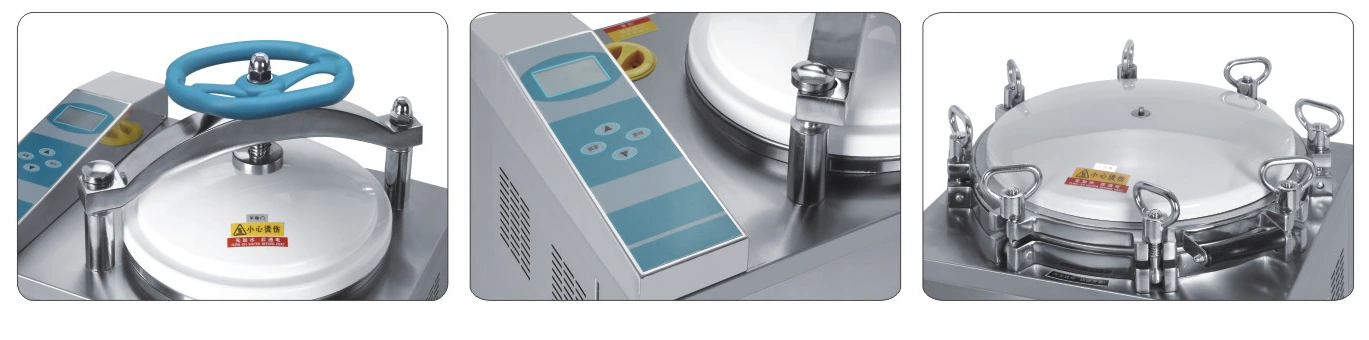 De stoomsterilisatoren met verticale druk zijn geassembleerd met een verwarmingssysteem, een microcomputergestuurd systeem, een beschermingssysteem tegen hitte en overdruk, die betrouwbaar zijn wat betreft de steriliserende effecten, gemakkelijk in gebruik en energiebesparing. Ze zijn geschikt voor het steriliseren van apparatuur, verbandmiddelen, containers, vloeistoffen, kweekmedium, afval, enz. in ziekenhuizen, ziektebestrijdingscentra, P2 biologische laboratoria en bloedstations, enz. van wetenschappelijke onderzoeksinstituten.